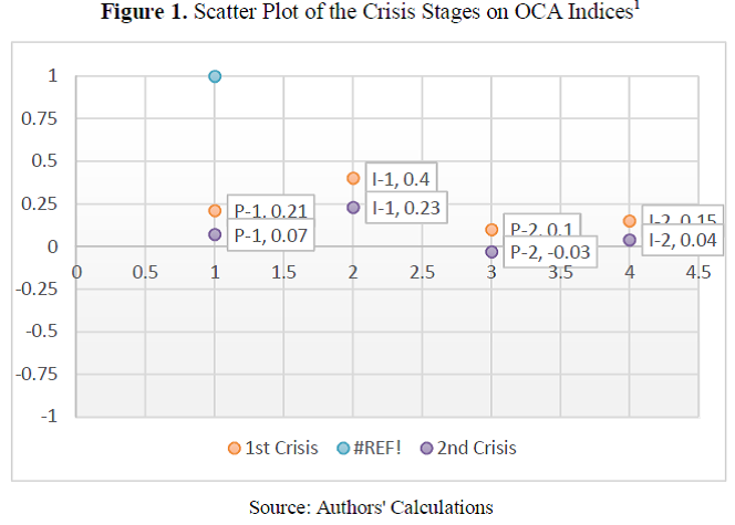 Findings on OCA indices suggest that the changes in the traits of Control over Events, and Need for Power are a temporary personality shift related to dealing with the crisis, and not related to Donald Trump's major world views and beliefs. According to the results, Donald Trump had followed the same beliefs and perceptions from the first crisis stage to the second crisis stage. Figure 1. is the scatter plot of Donald Trump’s OCA indices in both crisis stages.