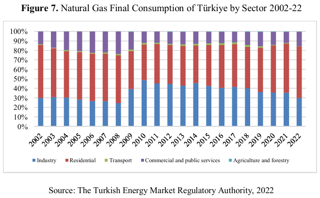 Due to the natural gas industry liberalization, Türkiye changed its laws related to the gas market in 2001 and 2007, and amended them in 2008. The changes in the law were made in the field of licenses, transit tariffs, marketing licenses, import and re-export licenses, operation of the distribution transmission network and services, as well as infrastructure and technical equipment (World Bank, 2017). Furthermore, in 2019, the Turkish Energy Market Regulatory Authority announced the rules regarding pipeline imports to make Türkiye a regional gas transmission and trade hub.