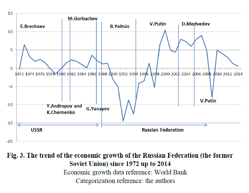 Fig. 3. The trend of the economic growth of the Russian Federation (the former Soviet Union) since 1972 up to 2014