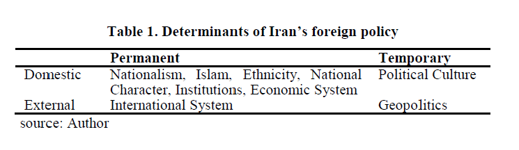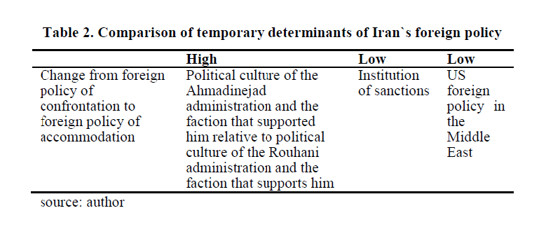 Table 2. Comparison of temporary determinants of Iran`s foreign policy