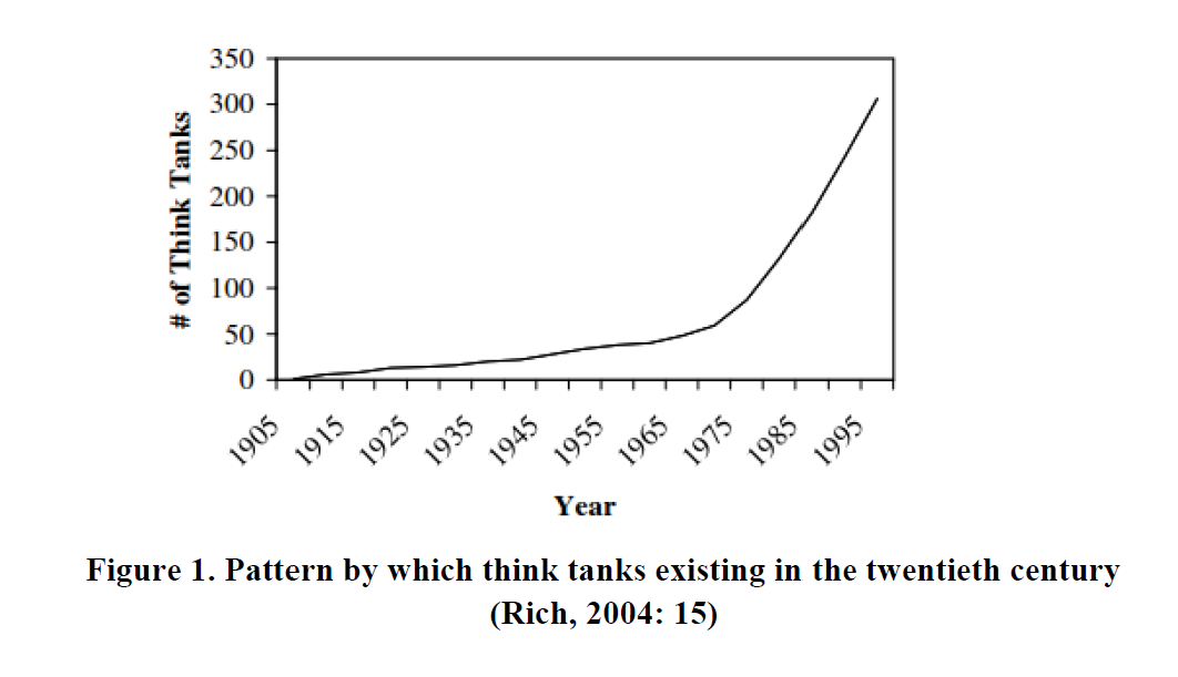 Figure 1. Pattern by which think tanks existing in the twentieth century (Rich, 2004: 15)