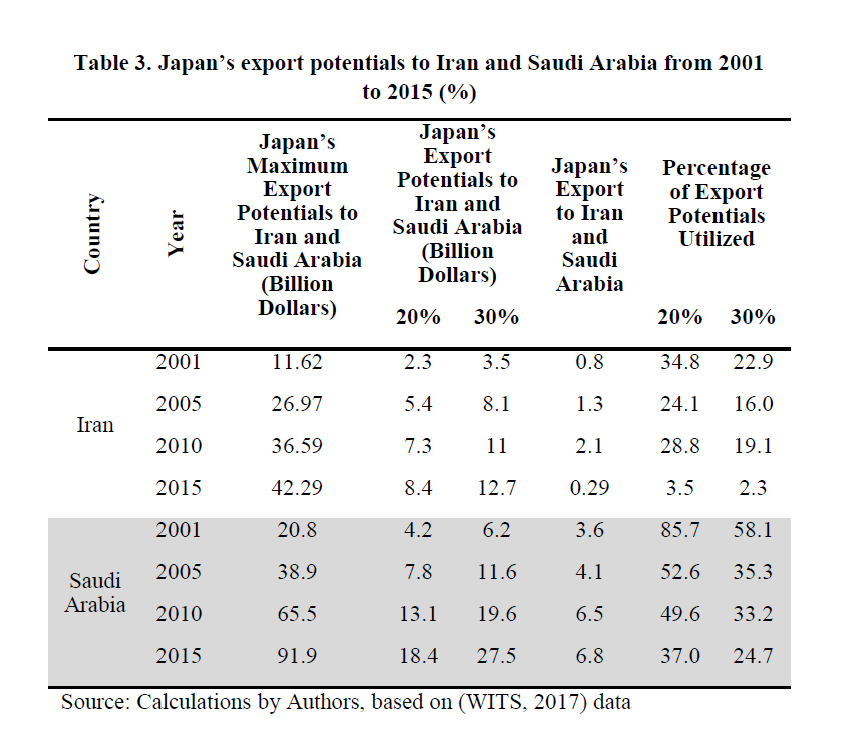 Table 3. Japan’s export potentials to Iran and Saudi Arabia from 2001 to 2015 (%)