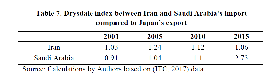 Table 7. Drysdale index between Iran and Saudi Arabia’s import compared to Japan’s export