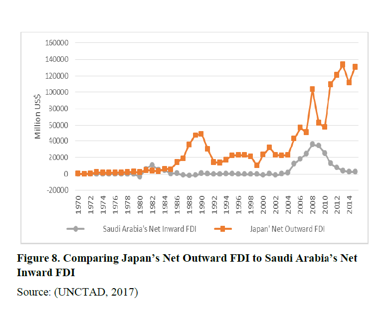 Figure 8. Comparing Japan’s Net Outward FDI to Saudi Arabia’s Net Inward FDI