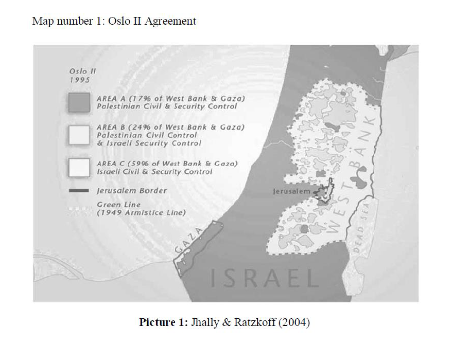 According to the Oslo II agreement, the West Bank would be divided into three zones: areas A, B and C:
