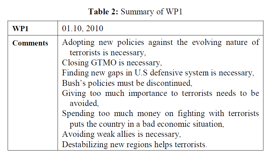 The Washington Post Op-Ed (WP1)was written on January 10, 2010 by Bruce Hoffman, a professor of security studies at Georgetown University and a senior fellow at the US Military Academy’s Combating Terrorism Center, and tackled Obama’s speech on January 5, 2010.