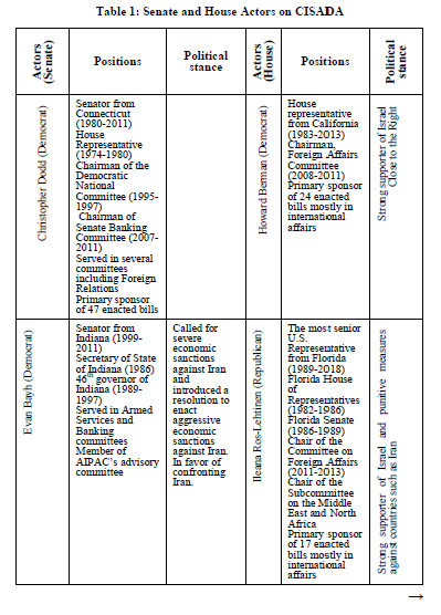 Table 1: Senate and House Actors on CISADA