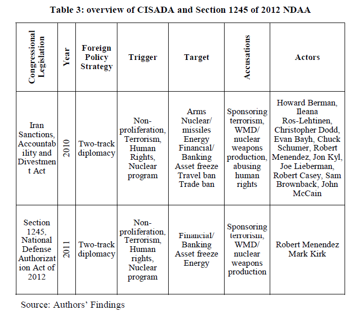 Table 3: overview of CISADA and Section 1245 of 2012 NDAA