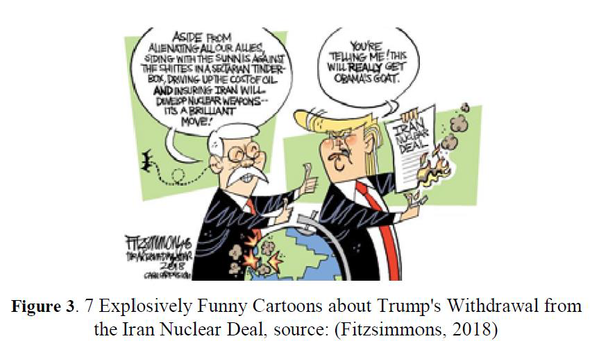 Figure 3. 7 Explosively Funny Cartoons about Trump's Withdrawal from the Iran Nuclear Deal, source: (Fitzsimmons, 2018)