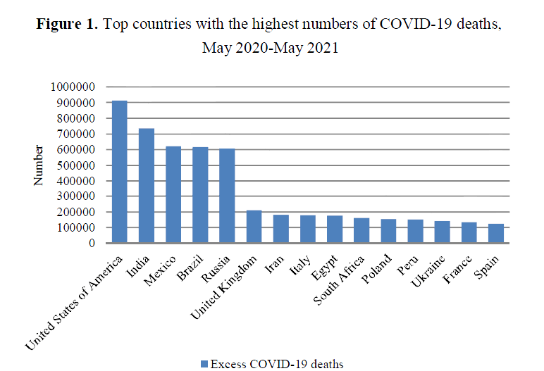 The coronavirus pandemic has deeply affected the entire global economic system, while causing millions of deaths worldwide. According to the Wang (2021), all countries with different levels of development are facing the challenge of deaths resulted from COVID-19. Between May 2020 and May 2021, the top-ranked country, based on the highest numbers of COVID-19 deaths, was the United States of America with a developed health system (Pines, 2021), since the World War II (Girvan and Roy, 2020) followed by India, Brazil, and Russian Federation as the major members of BRICS (with acceptable economic resiliency against unprecedented shock (Danish, Baloch, Mahmood & Zhang, 2019; Ujunwa, Ujunwa & Okoyeuzu, 2021)). Figure 1 illustrates the top countries in which the challenges of COVID-19-related deaths has more significant.