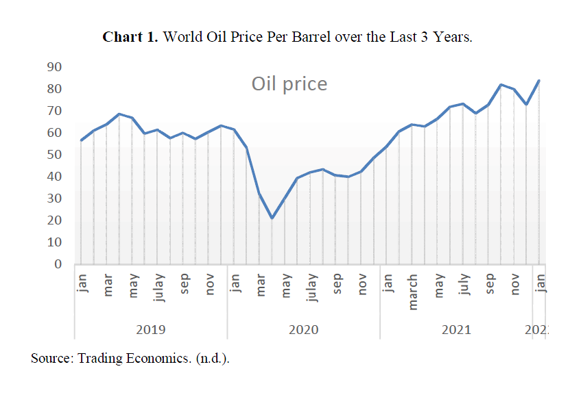 Secondly, COVID-19 has created a demand shock in the oil industry, which has been affected by the practice of quarantine in various countries. The COVID-19 crisis has affected a wide range of energy markets and has had a stronger impact on oil markets as it has reduced the flow of people and goods around the world. It has also drastically reduced demand for fuel. The uncertainty index has also increased due to the risk of spreading the virus worldwide. This situation exacerbated anxiety in all countries, and governments were urged to shut down large industries in the largest developed and developing countries that import oil. As a result, COVID-19 led to a sharp decline in global oil demand, especially in the United States, Japan, and the European Union (Bourghelle et al., 2021, p.1). In fact, it can be said that the global oil market became very unstable, and every event, even a small one, in the case of COVID-19 vaccines caused fluctuations in world oil prices. As can be seen in Chart (1), oil prices in April 2020 experienced the largest decline following the decline in global oil demand.