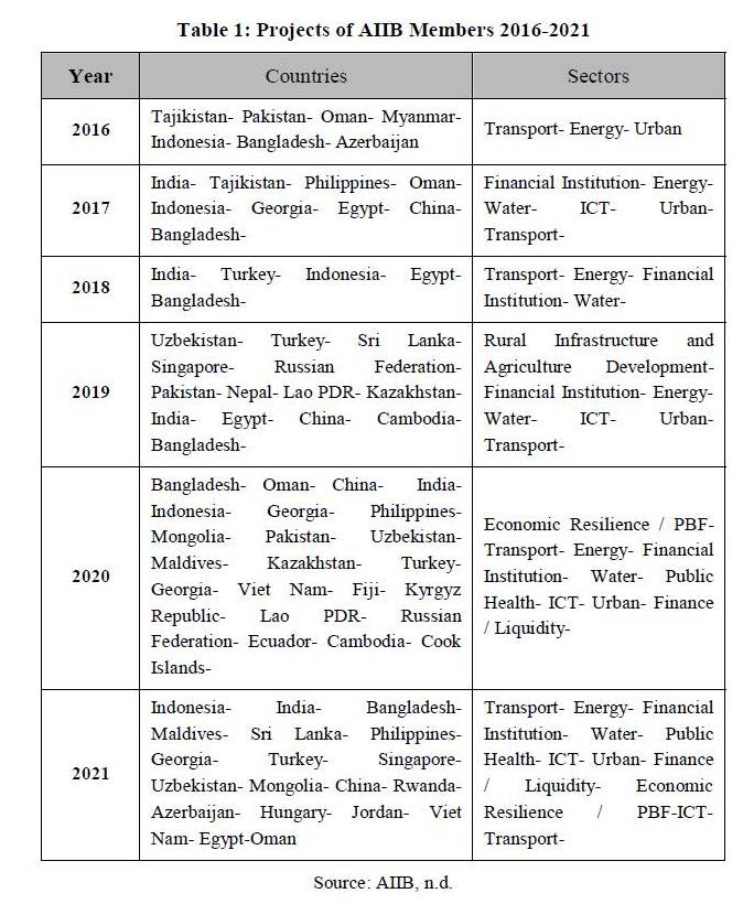 Although the title of this bank refers to Asia, many countries from around the world have joined it gradually, indicating the political-economic reception of countries. According to this point that United States and Japan are not the AIIB members, indicating strategic considerations in political-economic competitions between the central poles of the international system. In terms of economic quality and quantity of AIIB state members, 103 countries (2020) have joined the bank. Practical policies and willingness to achieve individual and collective goals indicate China's success in creating attraction and encouraging different countries to establish this international organizing institution. (AIIB, 2021). The membership of some countries, such as India, Russia, UK, South Korea, Australia, Brazil, and other European countries in AIIB is a substantial case implying the successful strategic step for the centrality of China. This trans- regional synergy with the centrality of China and political-economic powers modifies international equations in favor of China and enhances the tendency towards the role and potential of China in the existing order and a decline in the US-centered attitude governance. In addition, in terms of structural perspectives, institutions reflect the equilibrium and appropriateness conditions. Economic logic is a critical factor for economic institutes, but participatory management and synergistic model in its elements cause conflict in the political environment. Unequal economic power and position of countries must be covered structurally. Democratic, participatory, non-discriminative, and transparency systems are the most important issues in the mental dimensions and the intra-organizational collaboration. China considers this subject by focusing on efficiency and satisfying the impact of the administrative and executive affairs of the AIIB (AIIB, 2021, p. 18-23). The main purpose of AIIB is to facilitate measures and help poor countries that need financial sources and foreign investment. The efficiency and seriousness of AIIB are seen in its pursued and completed economic projects. If successful measures and effective performances are exhibited, countries will rely on and trust this new economic body. On the other hand, this confines China's power and centrality in managing international economic affairs. Therefore, growing cooperation and inner cohesion, along with the external effects of potential and efficiency of this bank on modification and changing political equations and international economic transactions are strategies that balance international politics in favor of China. Approval of 108 projects with 22 billion dollars (US) at this five-year phase is a great performance for this institution (AIIB, 2021, pp. 3-4).