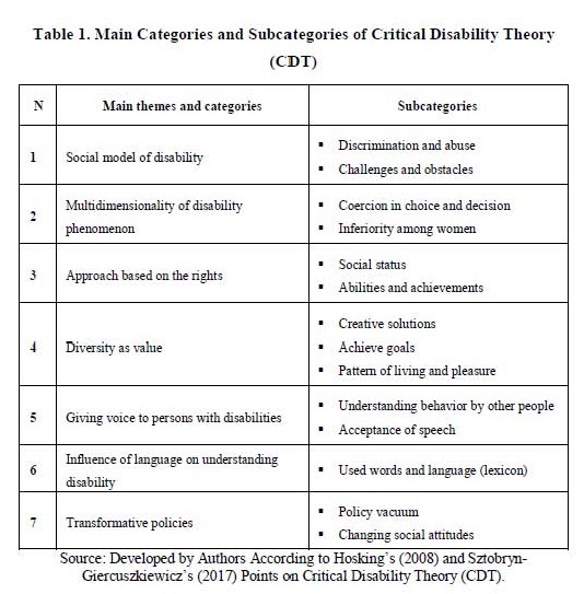 Table 1. Main Categories and Subcategories of Critical Disability Theory (CDT)