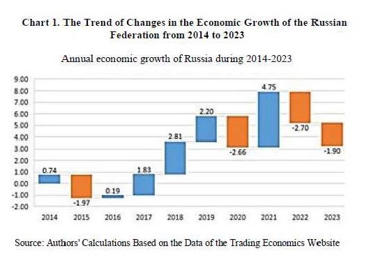 As depicted in Chart 1, Russia's gross domestic product (GDP), which had exhibited a positive growth trend with a rate of 4.75% in 2021, sharply declined to -2.7% following the commencement of the military operation in Ukraine in 2022. In the first three months of 2023, after a 2.7% contraction in the previous period, Russia's GDP continued to decline by 9.1% compared to the same period last year, primarily due to the sustained pressure from Western sanctions on the Russian economy. This resulted in a GDP growth rate of -9.1%. Previous forecasts by the Ministry of Economy of Russia had predicted a 2.2% decline in GDP for the first quarter, while the Central Bank of Russia projected a 3.2% decrease.