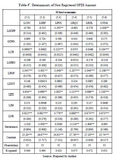 For new registered OFDI amount, once this country is selected for OFDI flows, we proposed two hypotheses: