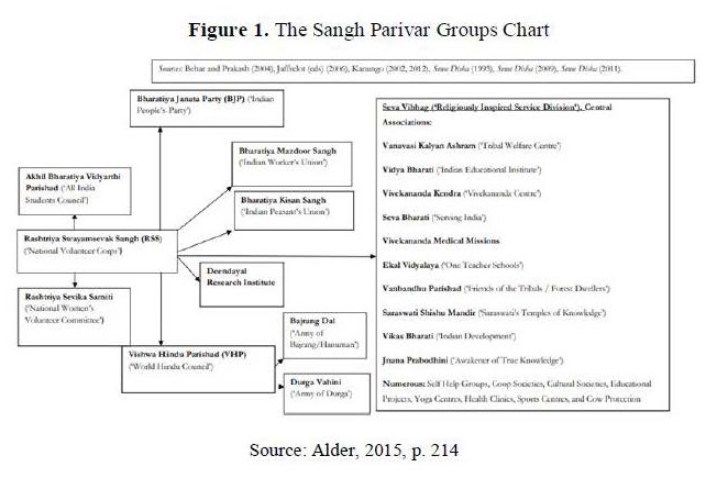 The "Family of Associations" (Sangh Parivar), is comprised of prominent Hindu nationalist organizations such as the "National Patriotic Organization" or the "Association of National Volunteers," with the primary one being the "Rashtriya Swayamsevak Sangh" (RSS) and the others including the "World Hindu Council" (Vishva Hindu Parishad - VHP), Bharatiya Janata Party (BJP), Bajrang Dal, and Shiv Senna..., which constitute the "family" (Sangh Parivar). The BJP serves as the political representative of these organizations.