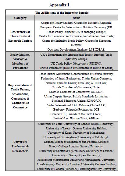 - Independent Trade Policy after Brexit; Findings from the Interviews