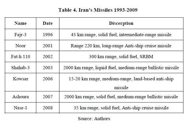 Given Iran's disadvantaged position relative to its neighbors in terms of military equipment balance post-war, coupled with a significant aerial advantage enjoyed by its regional adversaries, the imperative of enhancing deterrence capabilities through missile production and development emerged. Concurrently, Iran's geopolitical landscape, marked by Saddam Hussein's aggression against Kuwait and subsequent US-led intervention in the Persian Gulf War, underscored the importance of peripheral threats and the reassessment of deterrence capabilities. To address these imperatives, Iran pursued a dual strategy of importing weapons and advanced military technology while concurrently bolstering domestic military production to reduce reliance on foreign suppliers. As shown in table 4, Iran's endeavors to overcome challenges in procuring and maintaining military equipment, along with the need to compensate for limitations and weaknesses in conventional weaponry, fueled a concerted effort to advance missile capabilities and attain indigenous production technology.